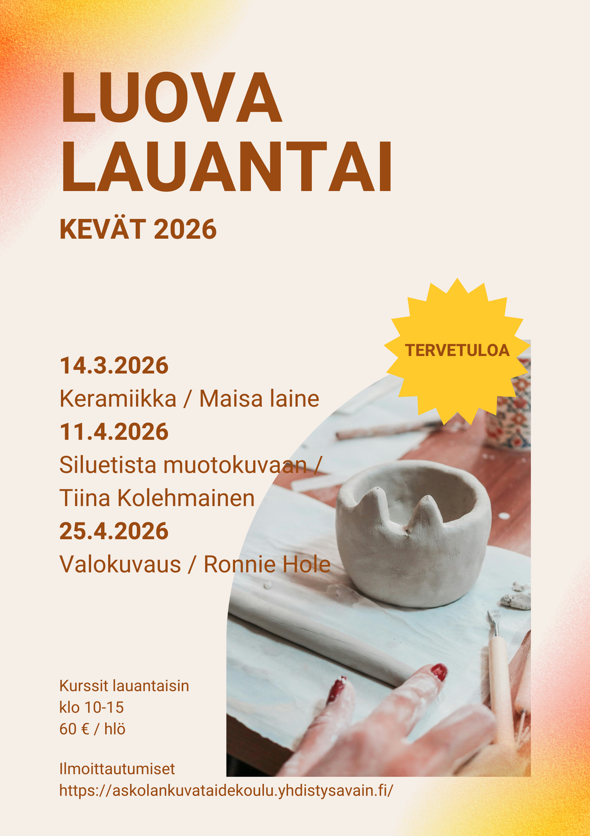 Vuosi 2026 starttaa luovasti! Järjestämme kevään aikana aikuisille suunnattuja päiväkursseja.